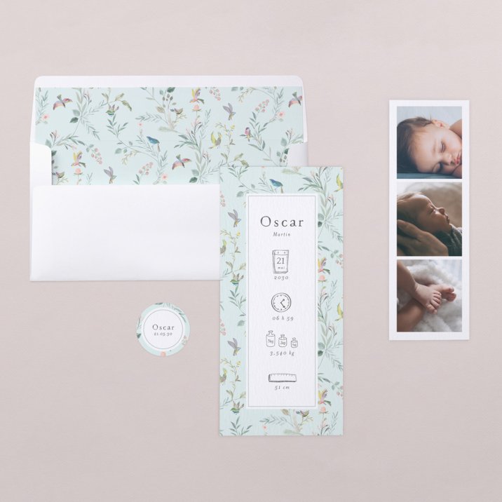 Un faire-part original illustrant à merveille tous les petits détails de sa naissance... Succombez à la finesse du design Verdi pour annoncer l'arrivée de votre bébé.