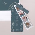 Ce faire-part de naissance se présente sous la forme d'une carte "marque-page", pliée par le milieu. À son ouverture, vos destinataires auront le plaisir de découvrir un photomaton de votre nouveau-né, apposé à côté de votre heureuse annonce.
