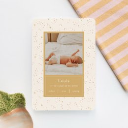 Ce faire-part de naissance se présente sous la forme d'une carte "marque-page", pliée par le milieu. À son ouverture, vos destinataires auront le plaisir de découvrir un photomaton de votre nouveau-né, apposé à côté de votre heureuse annonce.
