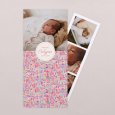 Ce faire-part de naissance se présente sous la forme d'une carte "marque-page", pliée par le milieu. À son ouverture, vos destinataires auront le plaisir de découvrir un photomaton de votre nouveau-né, apposé à côté de votre heureuse annonce.