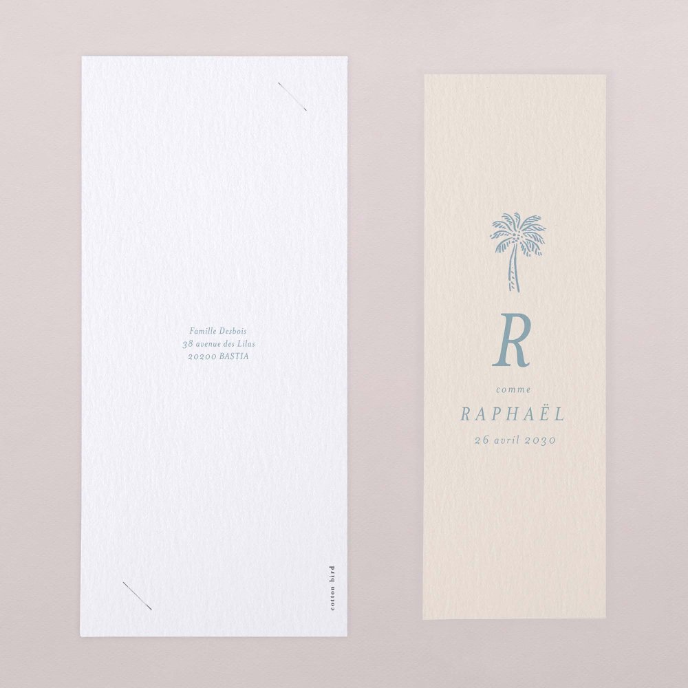 Entre mer et palmiers, le faire-part de naissance Ocean child dresse un tableau ensoleillé, parfait pour annoncer la naissance de votre petite fille ou garçon cet été.
