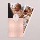 Ce faire-part de naissance se présente sous la forme d'une carte "marque-page", pliée par le milieu. À son ouverture, vos destinataires auront le plaisir de découvrir un photomaton de votre nouveau-né, apposé à côté de votre heureuse annonce.