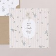 Une douce ribambelle de fleurs de myosotis bleues s'invitent sur le faire-part de naissance avec rayures Myosotis. Une création poétique pleine de douceur, parfaite pour annoncer avec tendresse la naissance de votre bébé au printemps ou en été.
