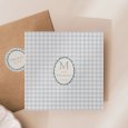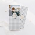 Avec son motif vichy emblématique, le faire-part de naissance Joli vichy - bleu partage tendrement, dans une composition aux teintes bleues délicates, la venue au monde de votre nouveau-né.