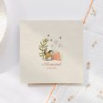 Un petit lapin, en compagnie de ses amis papillons, se prélasse au milieu des fleurs. Ornant ce faire-part, il délivre un précieux message : un paisible bébé est venu compléter votre famille.