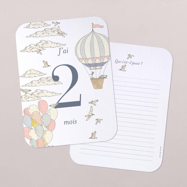 - illustrées au recto avec les différentes étapes clés de bébé, de sa 1ère semaine de vie à ses 12 mois