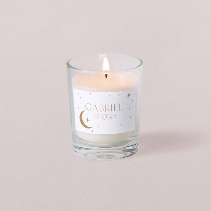 Fabriquée en France, la petite bougie est délivrée avec son étiquette adhésive personnalisée, à coller par vos soins.