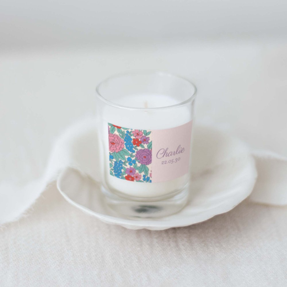 La petite bougie parfumée est à offrir en guise de remerciements. Coulé dans un verre transparent, ce joli présent pourra être conservé longtemps, en souvenir de la naissance de votre enfant.