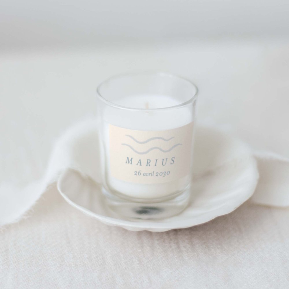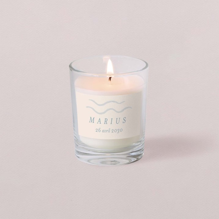 La petite bougie parfumée est à offrir en guise de remerciements. Coulé dans un verre transparent, ce joli présent pourra être conservé longtemps, en souvenir de la naissance de votre enfant.