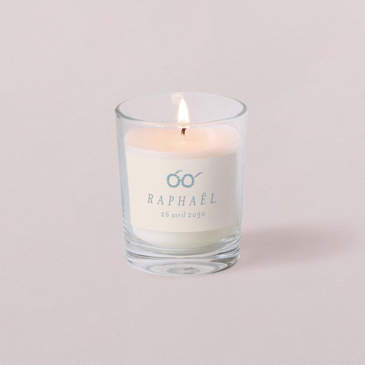 La petite bougie parfumée est à offrir en guise de remerciements. Coulé dans un verre transparent, ce joli présent pourra être conservé longtemps, en souvenir de la naissance de votre enfant.
