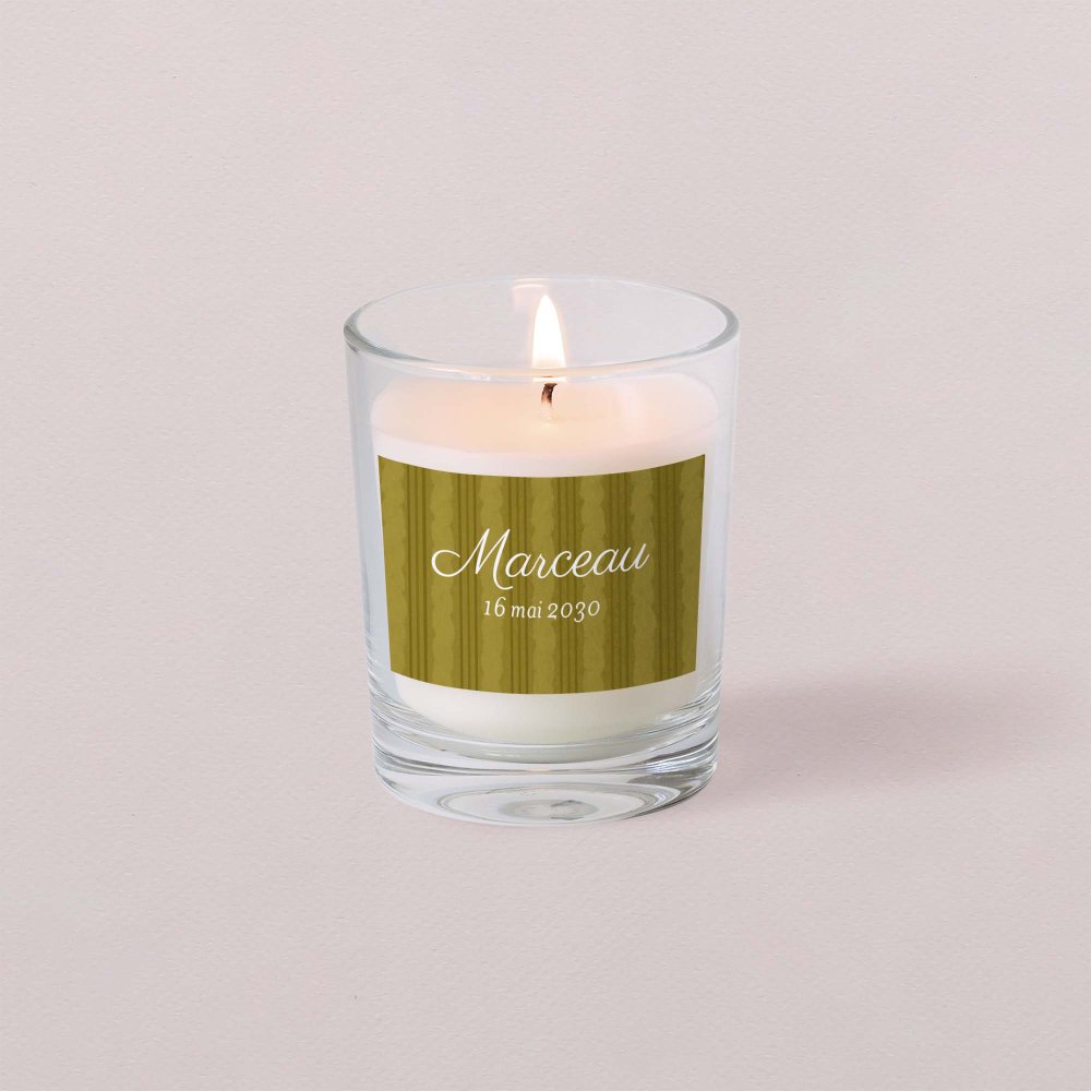 Fabriquée en France, la petite bougie est délivrée avec son étiquette adhésive personnalisée, à coller par vos soins.