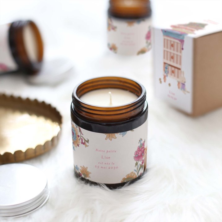 Offrez un précieux souvenir de votre bonheur, grâce à cette bougie apothicaire. Son délicat parfum aux notes de figuier et son aspect vintage font d’elle une superbe idée de cadeau de remerciement naissance.
