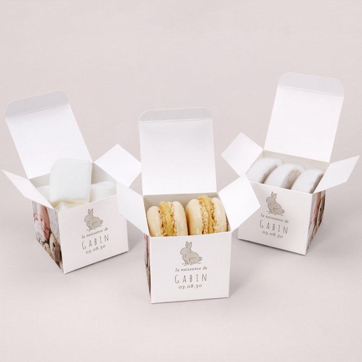 Pour enchanter vos proches, garnissez ce petit cube surprise de délicieuses dragées (disponibles en option), fabriquées artisanalement dans le sud de la France. Nous vous conseillons d’ajouter 20 dragées par boîte (50 g).