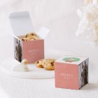 Pour enchanter vos proches, garnissez ce petit cube surprise de délicieuses dragées (disponibles en option), fabriquées artisanalement dans le sud de la France. Nous vous conseillons d’ajouter 20 dragées par boîte (50 g).