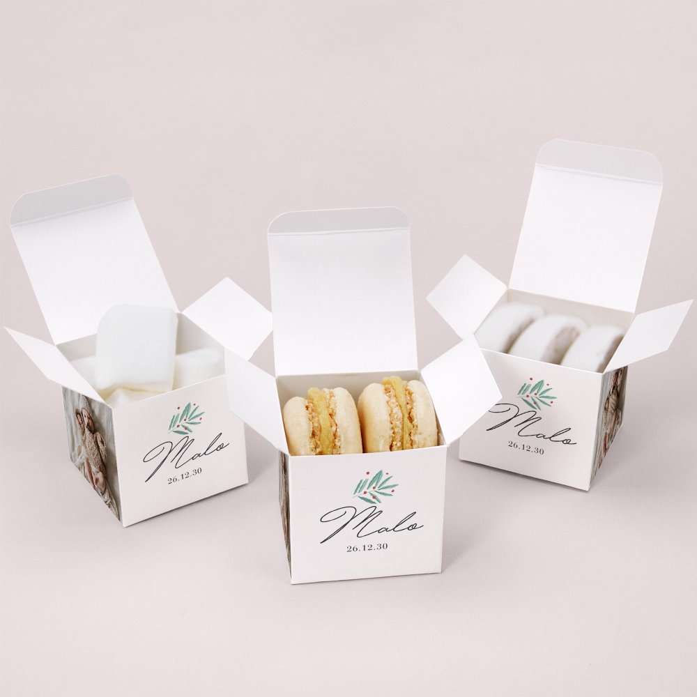 Pour enchanter vos proches, garnissez ce petit cube surprise de délicieuses dragées (disponibles en option), fabriquées artisanalement dans le sud de la France. Nous vous conseillons d’ajouter 20 dragées par boîte (50 g).