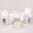 Pour enchanter vos proches, garnissez ce petit cube surprise de délicieuses dragées (disponibles en option), fabriquées artisanalement dans le sud de la France. Nous vous conseillons d’ajouter 20 dragées par boîte (50 g).
