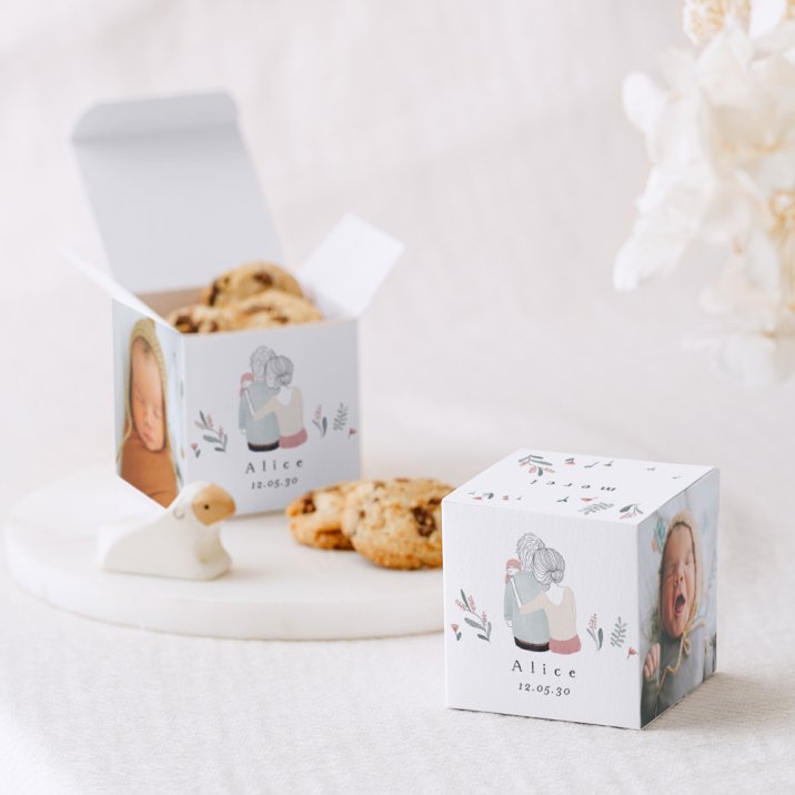 Pour enchanter vos proches, garnissez ce petit cube surprise de délicieuses dragées (disponibles en option), fabriquées artisanalement dans le sud de la France. Nous vous conseillons d’ajouter 20 dragées par boîte (50 g).