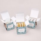 Pour enchanter vos proches, garnissez ce petit cube surprise de délicieuses dragées (disponibles en option), fabriquées artisanalement dans le sud de la France. Nous vous conseillons d’ajouter 20 dragées par boîte (50 g).