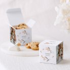 Pour enchanter vos proches, garnissez ce petit cube surprise de délicieuses dragées (disponibles en option), fabriquées artisanalement dans le sud de la France. Nous vous conseillons d’ajouter 20 dragées par boîte (50 g).