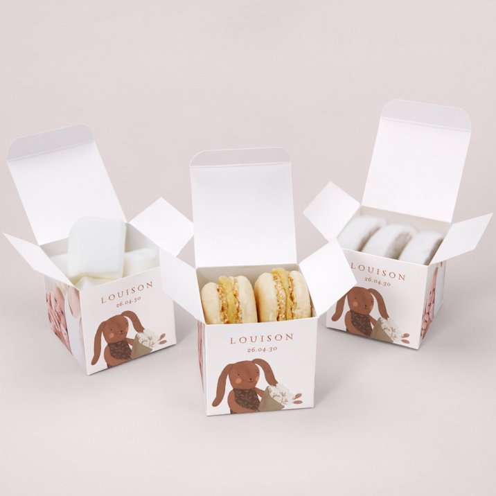 Faites jouer votre créativité en le remplissant de petits cadeaux ou de vos gourmandises préférées : bonbons, macarons, sablés, guimauves, nougats, meringues, calissons...