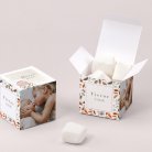 Pour enchanter vos proches, garnissez ce petit cube surprise de délicieuses dragées (disponibles en option), fabriquées artisanalement dans le sud de la France. Nous vous conseillons d’ajouter 20 dragées par boîte (50 g).