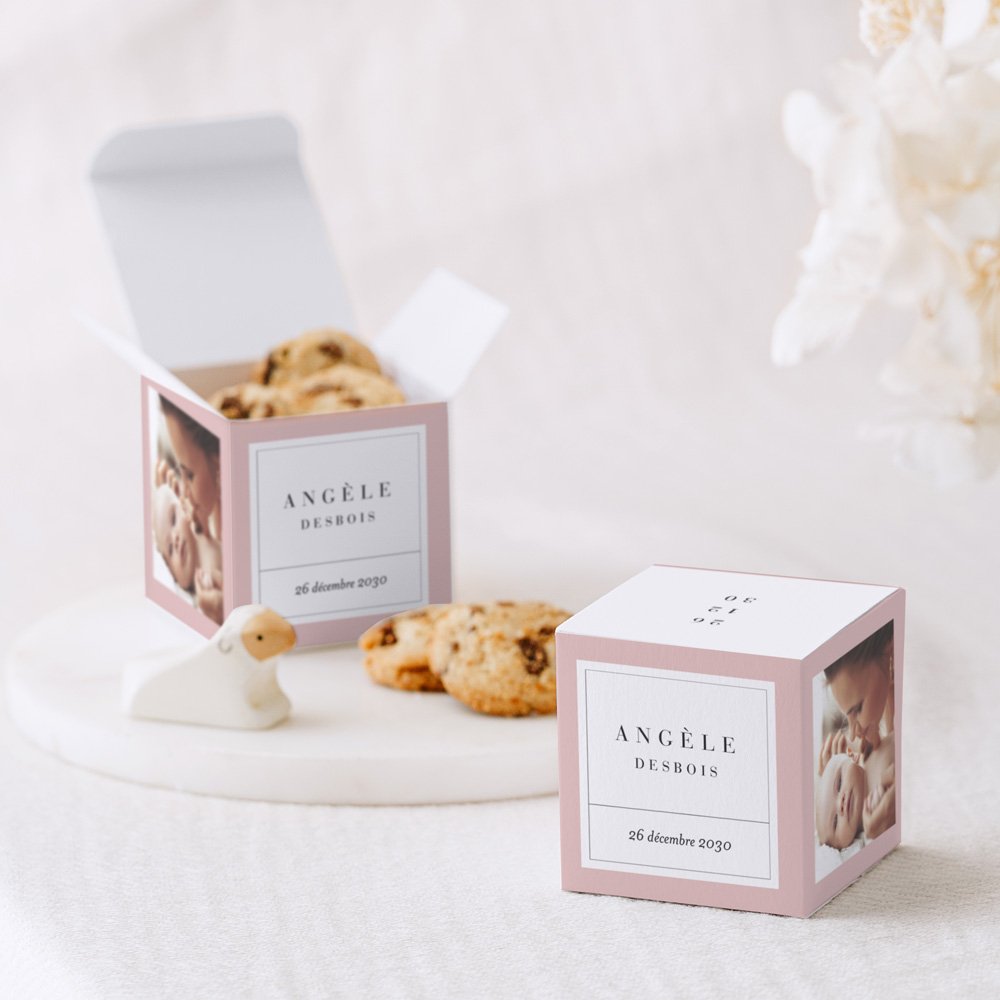 Pour enchanter vos proches, garnissez ce petit cube surprise de délicieuses dragées (disponibles en option), fabriquées artisanalement dans le sud de la France. Nous vous conseillons d’ajouter 20 dragées par boîte (50 g).