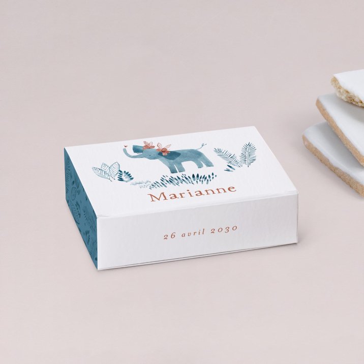 Remerciez vos proches pour leur présence et leurs cadeaux à la naissance de votre enfant, grâce à cette jolie boîte à biscuits personnalisée.