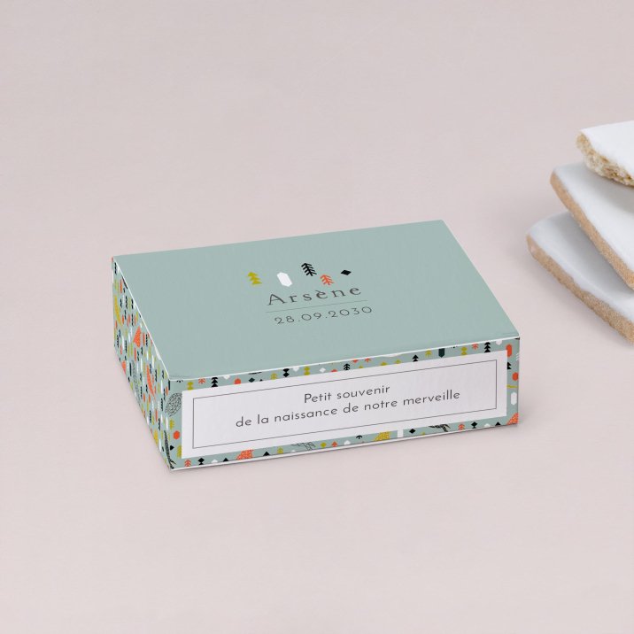 Sublimée avec le prénom de bébé, sa date de naissance et un mot de remerciement, ce cadeau est à garnir avec de petits biscuits ou douceurs de votre choix (non inclus).