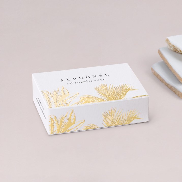 Remerciez vos proches pour leur présence et leurs cadeaux à la naissance de votre enfant, grâce à cette jolie boîte à biscuits personnalisée.