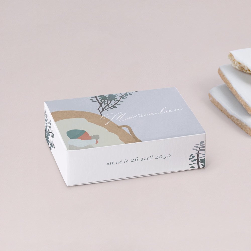 Remerciez vos proches pour leur présence et leurs cadeaux à la naissance de votre enfant, grâce à cette jolie boîte à biscuits personnalisée.
