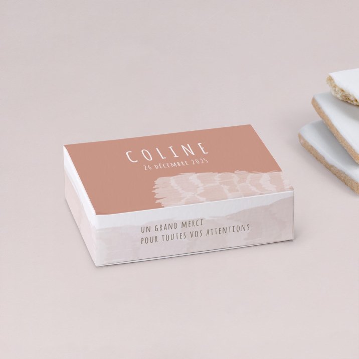 Remerciez vos proches pour leur présence et leurs cadeaux à la naissance de votre enfant, grâce à cette jolie boîte à biscuits personnalisée.