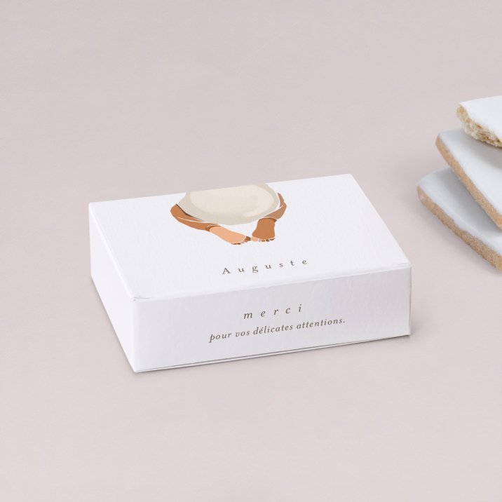 Remerciez vos proches pour leur présence et leurs cadeaux à la naissance de votre enfant, grâce à cette jolie boîte à biscuits personnalisée.