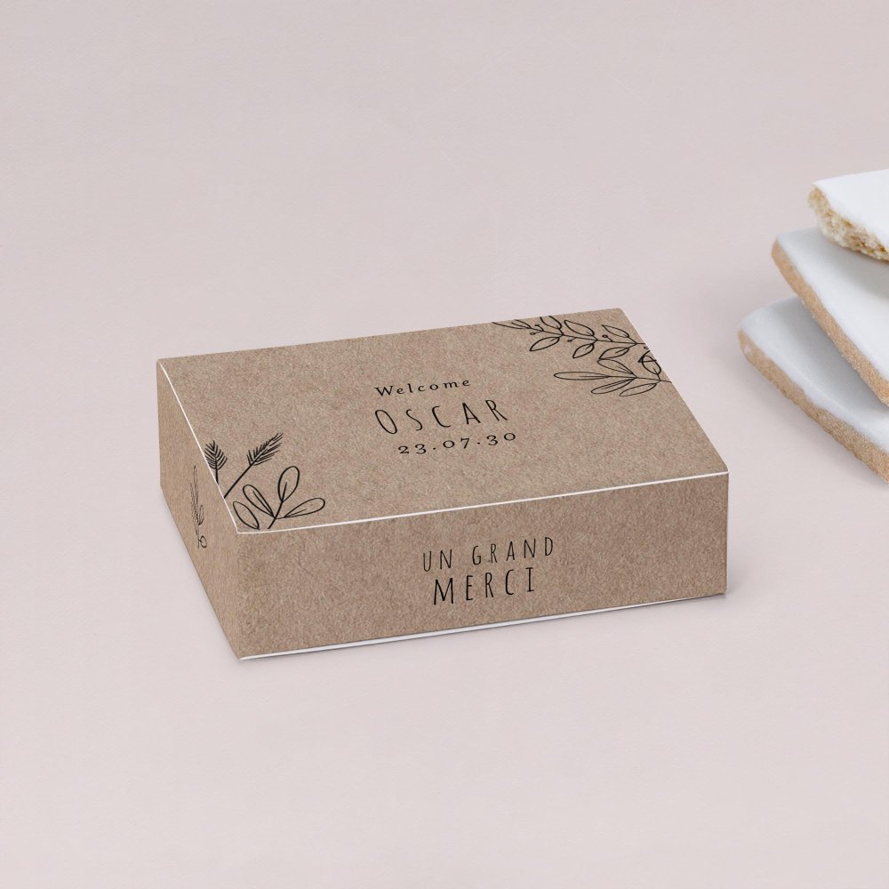 Sublimée avec le prénom de bébé, sa date de naissance et un mot de remerciement, ce cadeau est à garnir avec de petits biscuits ou douceurs de votre choix (non inclus).