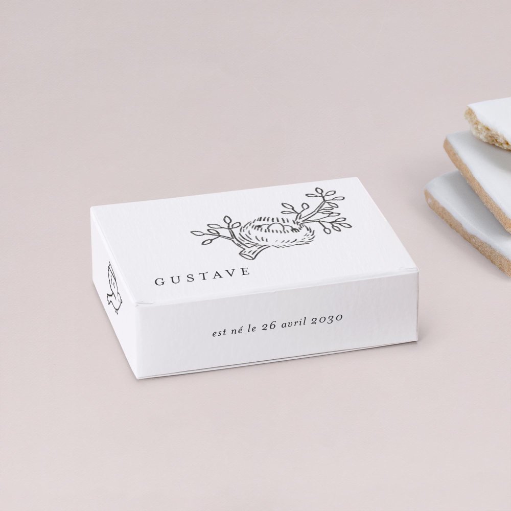 Remerciez vos proches pour leur présence et leurs cadeaux à la naissance de votre enfant, grâce à cette jolie boîte à biscuits personnalisée.