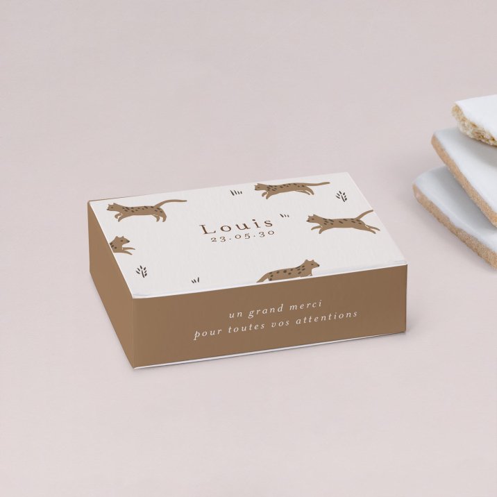 Remerciez vos proches pour leur présence et leurs cadeaux à la naissance de votre enfant, grâce à cette jolie boîte à biscuits personnalisée.