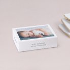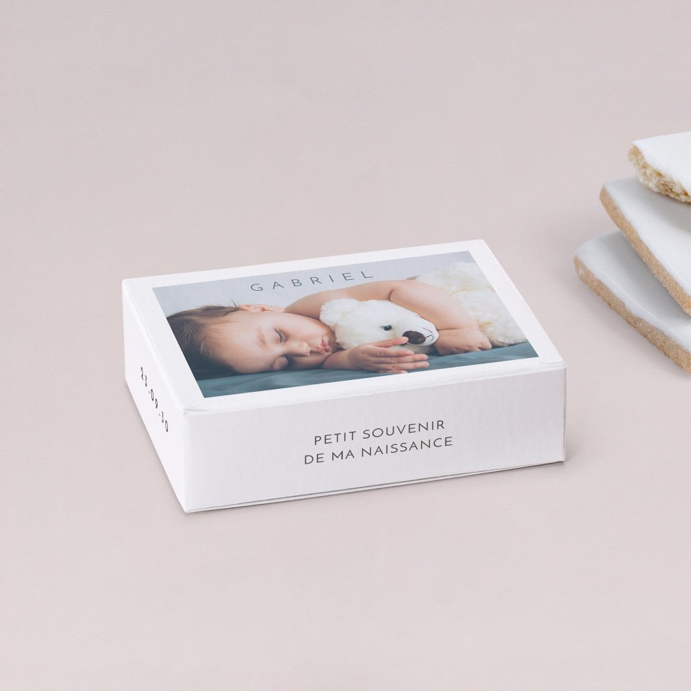 Remerciez vos proches pour leur présence et leurs cadeaux à la naissance de votre enfant, grâce à cette jolie boîte à biscuits personnalisée.