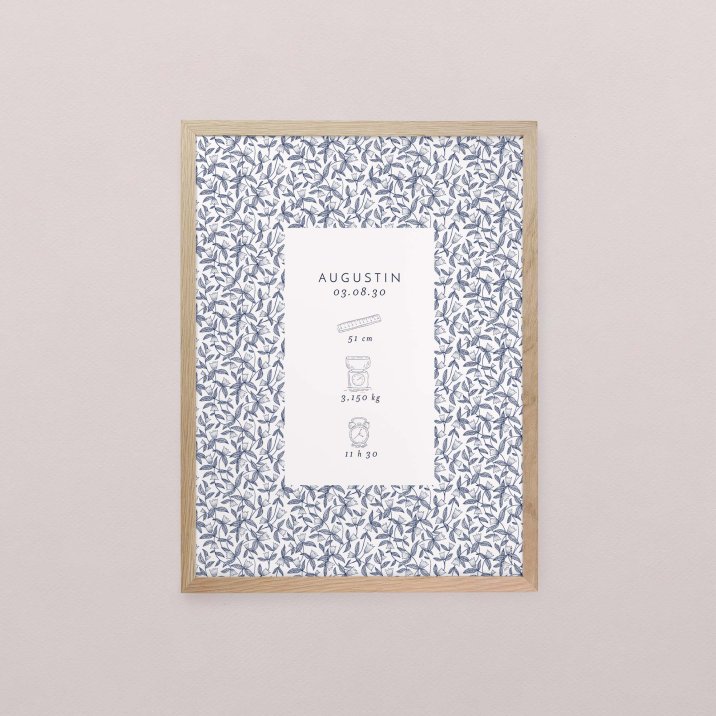 L'affiche se personnalise avec son prénom, sa taille, son poids, ainsi que l'heure et le jour de sa naissance.