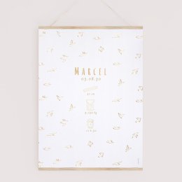 L'affiche se personnalise avec son prénom, sa taille, son poids, ainsi que l'heure et le jour de sa naissance.