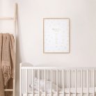 L'affiche se personnalise avec son prénom, sa taille, son poids, ainsi que l'heure et le jour de sa naissance.