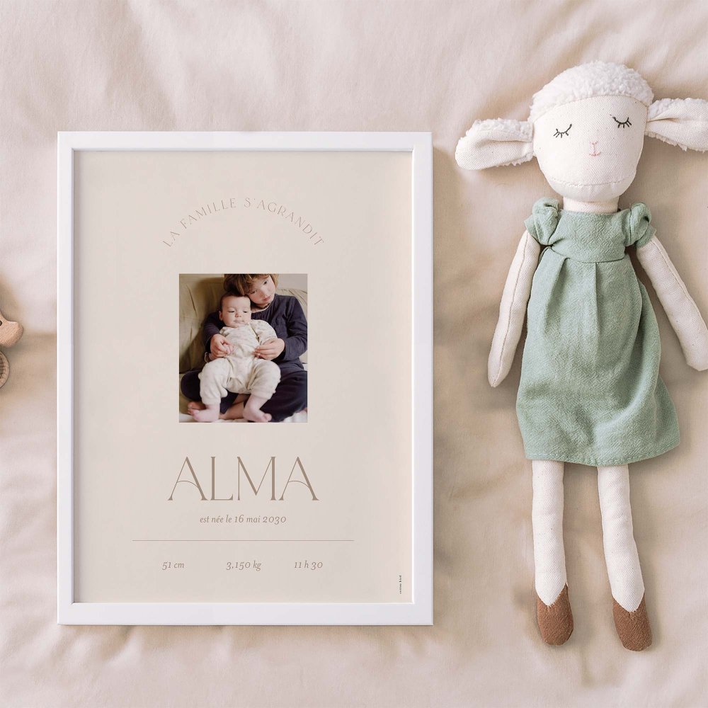 L'affiche se personnalise avec son prénom, sa taille, son poids, ainsi que l'heure et le jour de sa naissance.