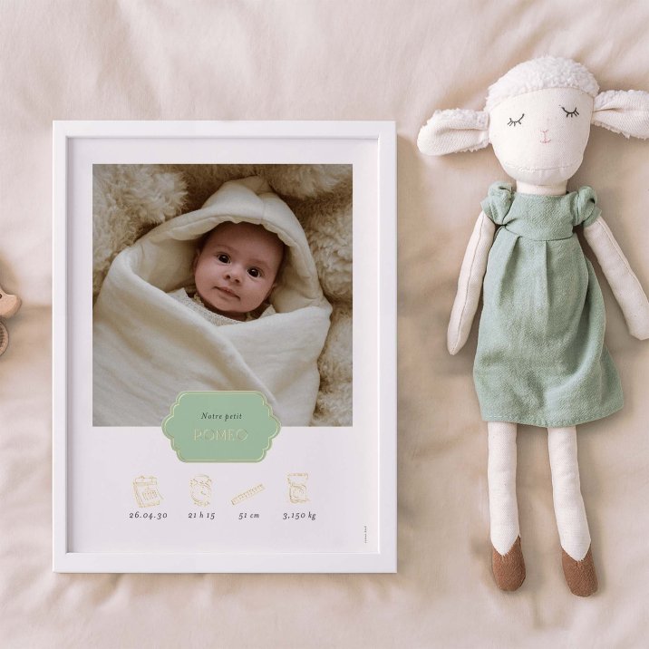 Affichez ce beau souvenir dans la chambre de votre nouveau-né.