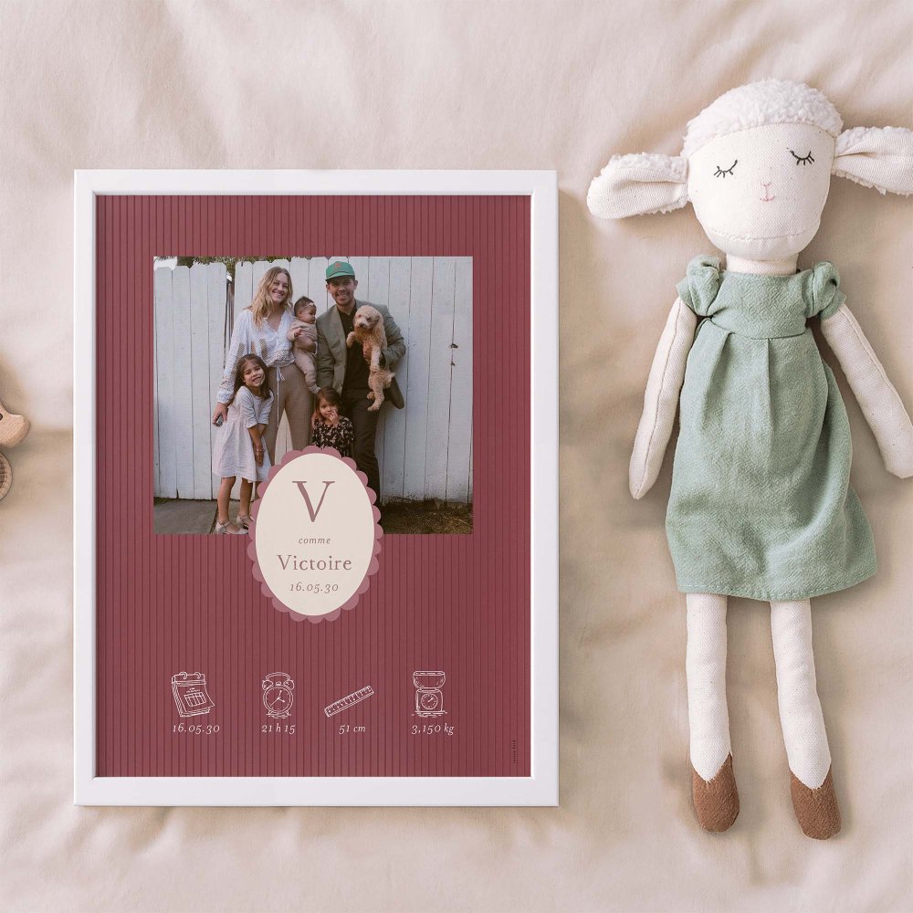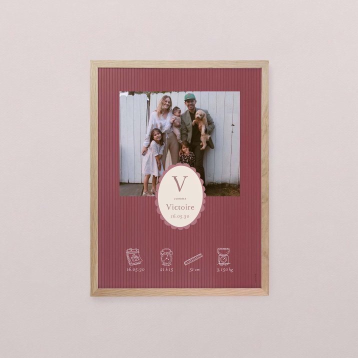 L'affiche se personnalise avec son prénom, sa taille, son poids, ainsi que l'heure et le jour de sa naissance.