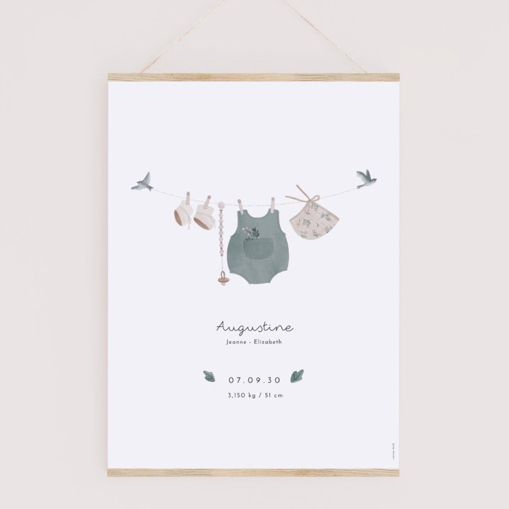 L'affiche se personnalise avec son prénom, sa taille, son poids, ainsi que l'heure et le jour de sa naissance.