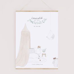 L'affiche se personnalise avec son prénom, sa taille, son poids, ainsi que l'heure et le jour de sa naissance.
