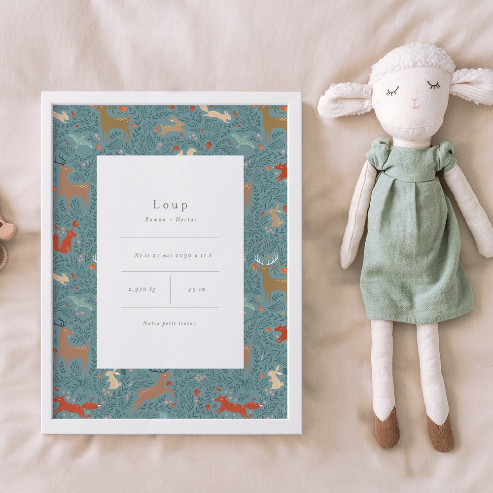 L'affiche Lancelot est la parfaite réplique du faire-part du même nom ! Cette jolie création viendra parfaitement décorer la chambre de bébé avec tous les détails de sa naissance.