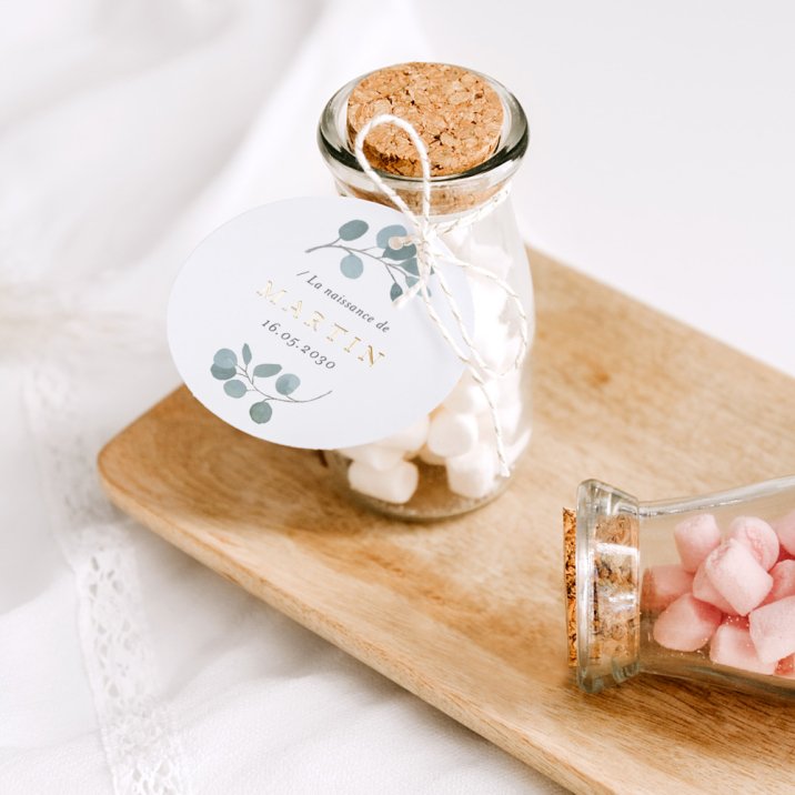 Utilisez ces étiquettes rondes pour peaufiner votre déco de table, pour personnaliser vos cadeaux invités... puis associez-les avec un joli ruban (au choix et en supplément) et le tour est joué !