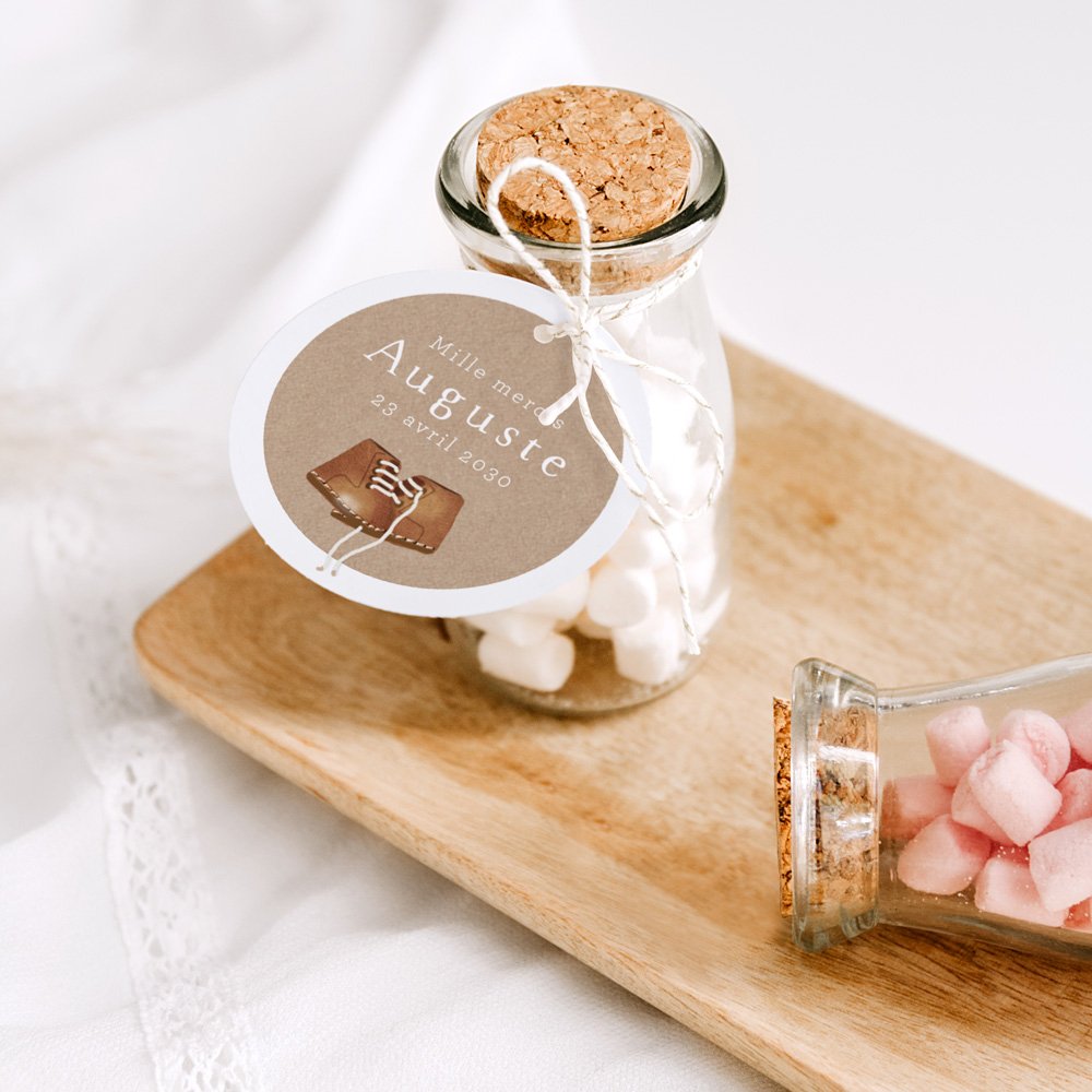 Utilisez ces étiquettes rondes pour peaufiner votre déco de table, pour personnaliser vos cadeaux invités... puis associez-les avec un joli ruban (au choix et en supplément) et le tour est joué !