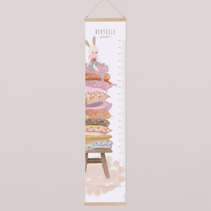 Suivez tendrement la croissance de votre enfant, année après année, avec cette toise illustrée. Graduée de 55 à 160 cm, cette toise se personnalise avec le prénom de votre enfant. Une jolie idée de cadeau à offrir ou à s’offrir, parfaite en décoration murale dans la chambre de votre petit dernier !