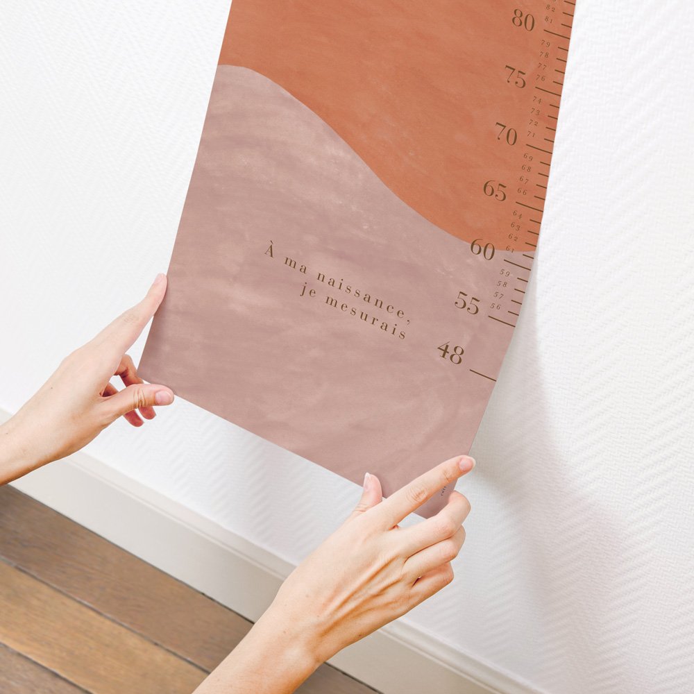 Mettez en lumière l'évolution de votre fille grâce à notre toise décorative Aurore - Terracotta. Son décor élégant et chaleureux acceuillera ses mesures au fil du temps pour de jolis moments de complicité transformés en souvenirs.
