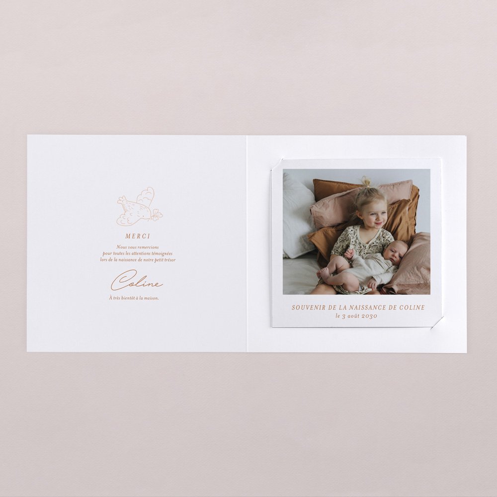 Cette carte de remerciements s'accompagne d'un cadeau glissé à l'intérieur : une photo de votre nouveau-né, inspirée du format polaroid (non magnétisé), qu'ils pourront conserver en souvenir, afficher selon leur inspiration, utiliser comme marque-page...